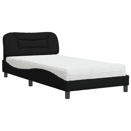 Letto con Materasso Hvar Nero 100x200 cm in Tessuto