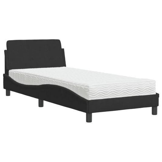 Letto con Materasso Dover Nero 90x190 cm in Velluto