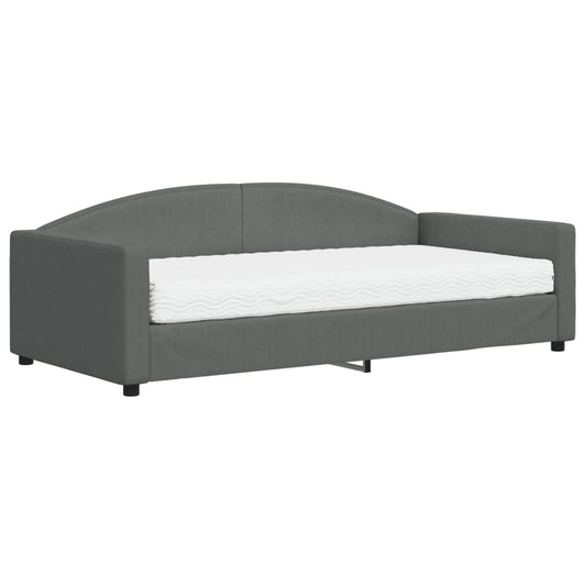 Divano Letto con Materasso Grigio Scuro 100x200 cm in Tessuto