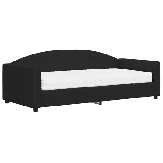 Divano Letto con Materasso Nero 90x200 cm in Tessuto