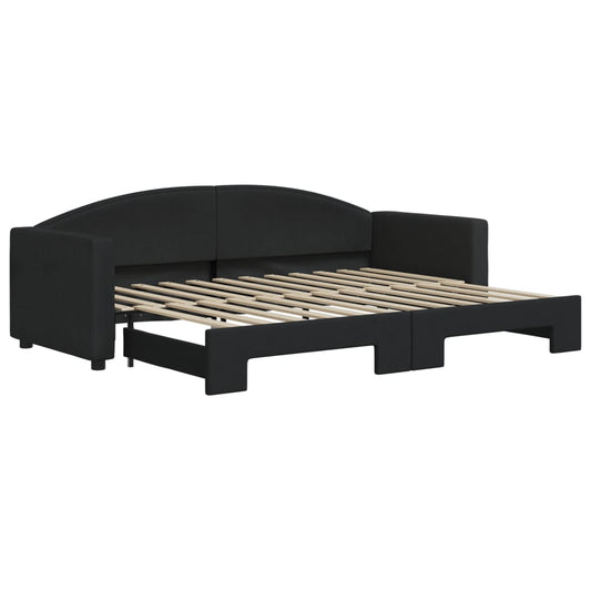 Divano Letto Estraibile con Materassi Nero 90x190 cm in Tessuto