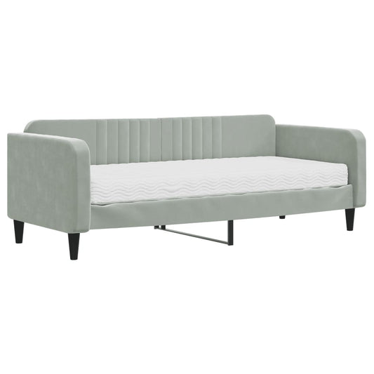 Divano Letto con Materasso Grigio Chiaro 90x200 cm in Velluto