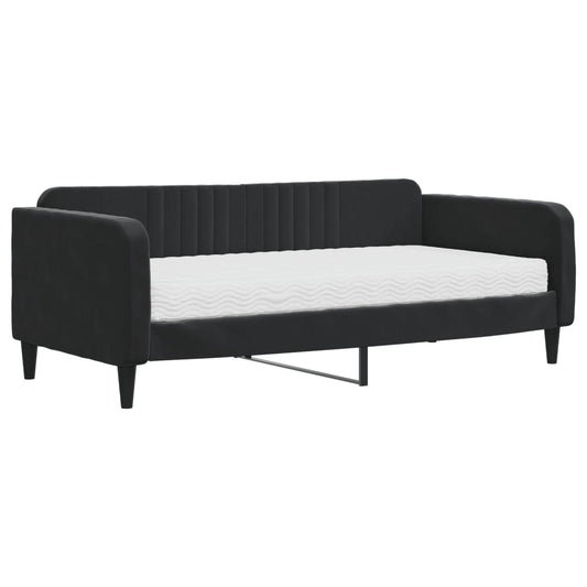 Divano Letto con Materasso Nero 90x190 cm in Velluto
