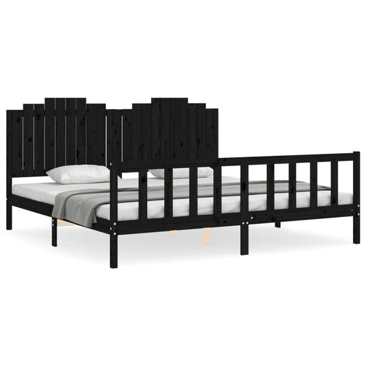 Giroletto con Testiera Nero 200x200 cm in Legno Massello