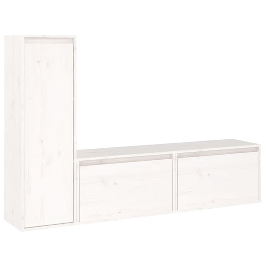 Mobili Porta TV 3 pz Bianchi in Legno Massello di Pino