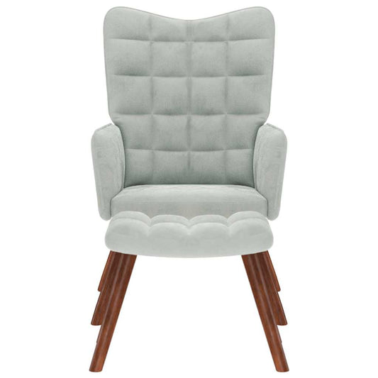 Poltrona Relax con Sgabello Grigio Chiaro in Velluto