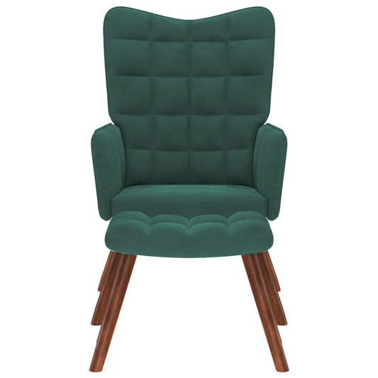 Poltrona Relax con Sgabello in Velluto Verde Scuro