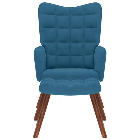 Poltrona Relax con Poggiapiedi Blu in Velluto