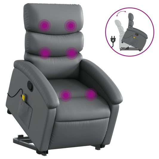 Reclining Massage Lift Chair Gray Faux Leather