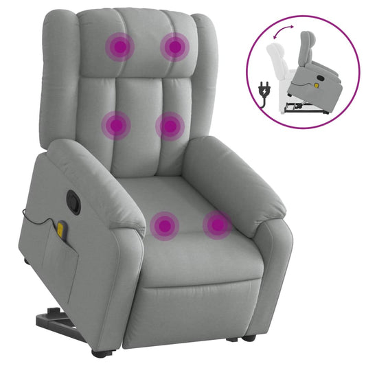 Poltrona Alzapersona Massaggi Reclinabile Grigio Chiaro Tessuto