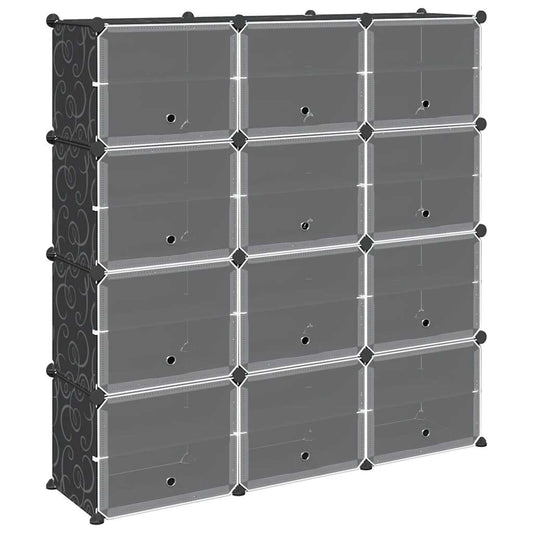 Organizzatore Portaoggetti con 12 Cubi e Ante Trasparenti in PP