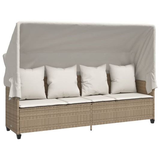 Sun Lounger with Canopy and Beige Polyrattan Cushions