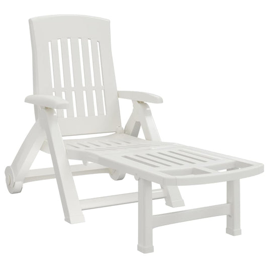 Lettino Prendisole Pieghevole con Ruote Bianco in PP