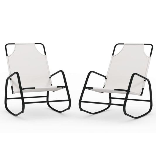 Lettini Prendisole a Dondolo 2 pz in Acciaio e Textilene Crema