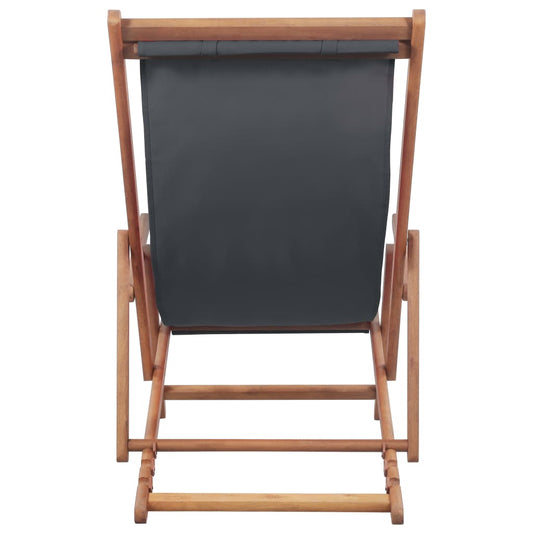 Folding Beach Chair with Wooden Frame and Gray Fabric