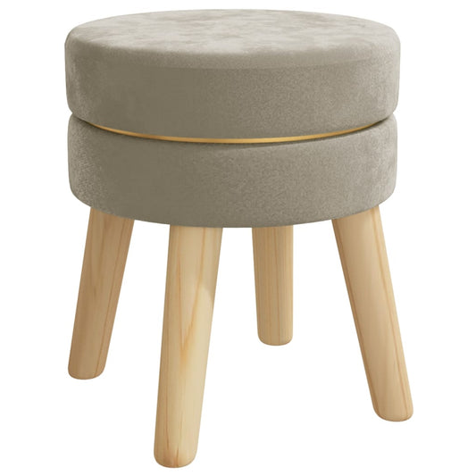 Sgabello con Gambe in Legno Grigio Chiaro Velluto