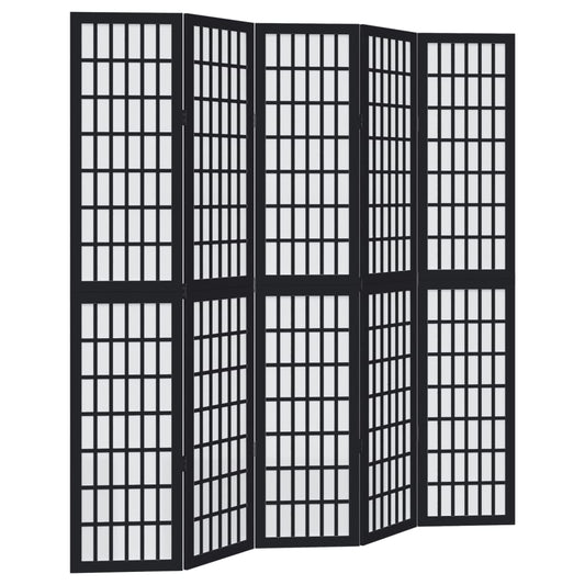 Divisorio Ambienti 5 Pannelli Nero Legno Massello di Paulownia