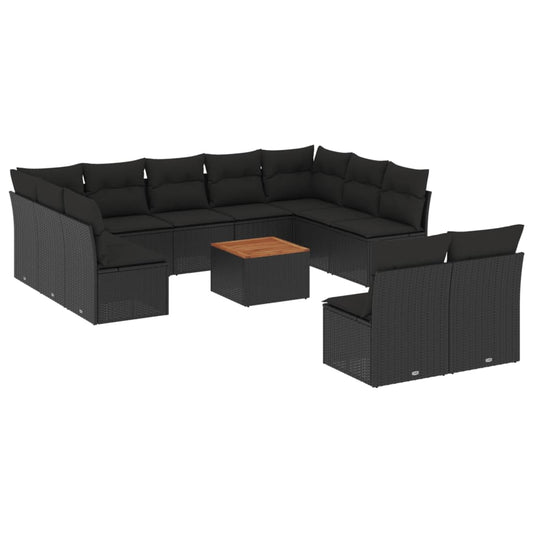 Set Divani da Giardino 12 pz con Cuscini Nero in Polyrattan