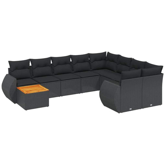 10pc Garden Sofa Set with Black Polyrattan Cushions