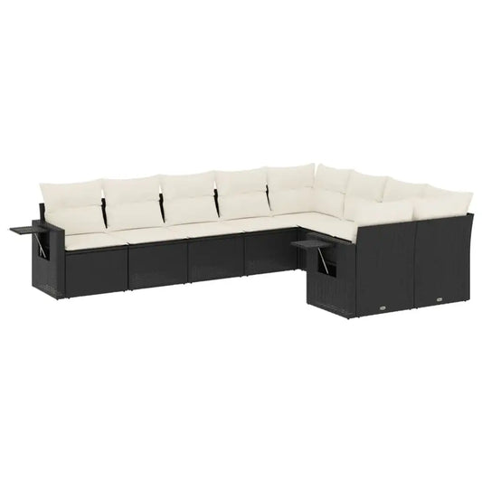 10pc Garden Sofa Set with Black Polyrattan Cushions