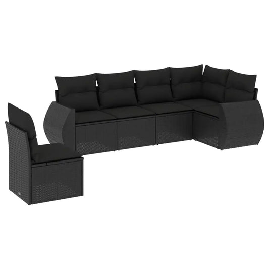 6-piece Garden Sofa Set with Black Polyrattan Cushions