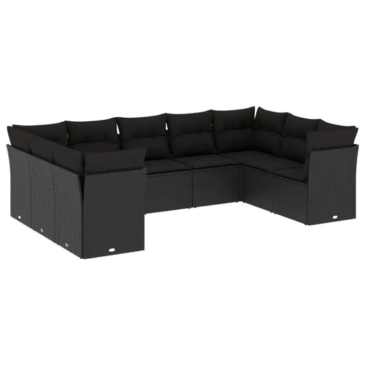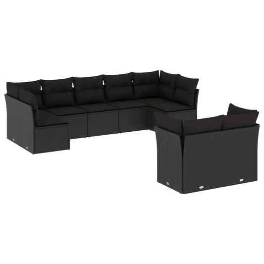 Set Divani da Giardino 9 pz con Cuscini Nero in Polyrattan
