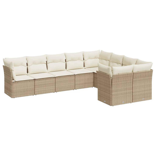 Set Divano da Giardino 9 pz con Cuscini Beige in Polyrattan