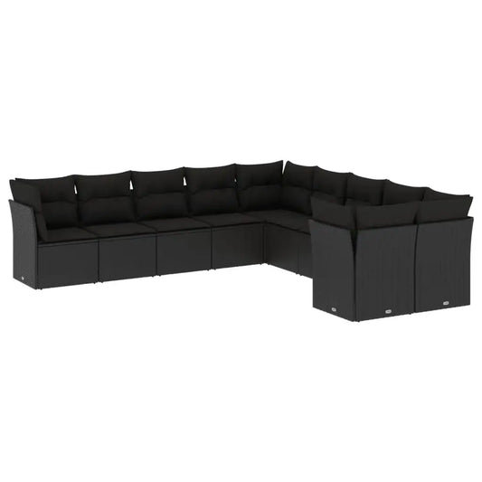 Set Divani da Giardino 10pz con Cuscini in Polyrattan Nero