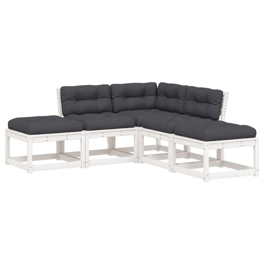 Set Salotto da Giardino 5 pz Bianco in Legno Massello di Pino