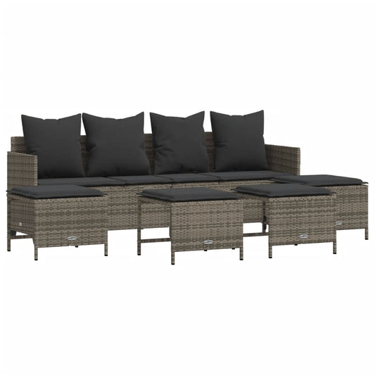 Set Divano da Giardino 5 pz con Cuscini Grigio in Polyrattan