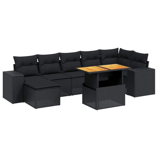 Set Divani da Giardino con Cuscini 8 pz Nero in Polyrattan