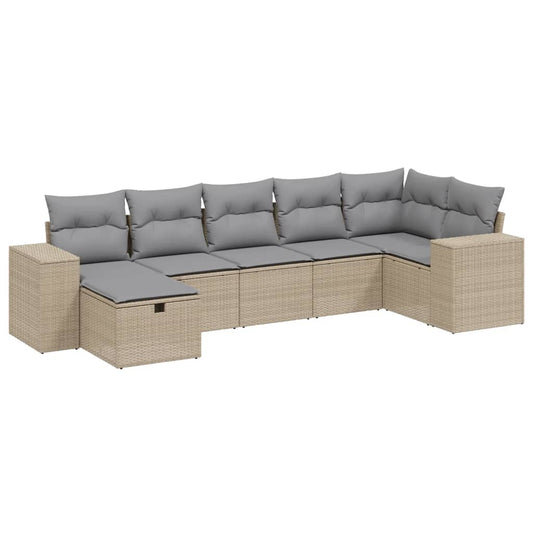 Set Divano da Giardino 7 pz con Cuscini Beige Misto Polyrattan