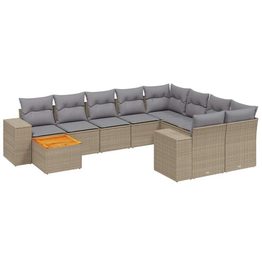 Set Divano da Giardino 10 pz con Cuscini Beige in Polyrattan