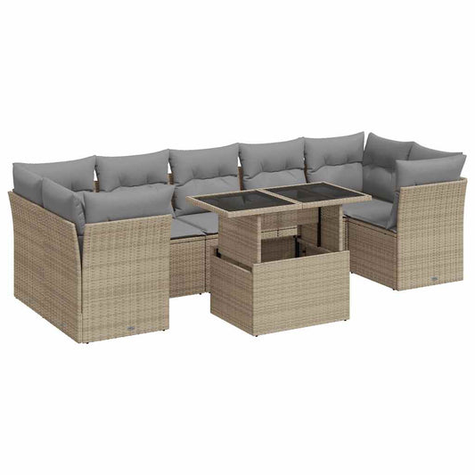 Set Divano da Giardino 8 pz con Cuscini Beige in Polyrattan