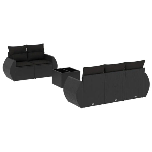 Set Divani da Giardino con Cuscini 7pz Nero Polyrattan