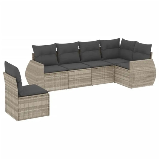 Set Divani da Giardino 7pz con Cuscini Grigio Chiaro Polyrattan