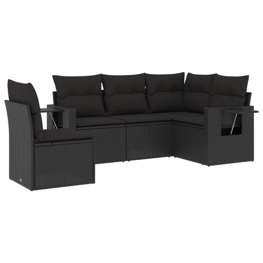 Set Divani da Giardino 5 pz con Cuscini in Polyrattan Nero