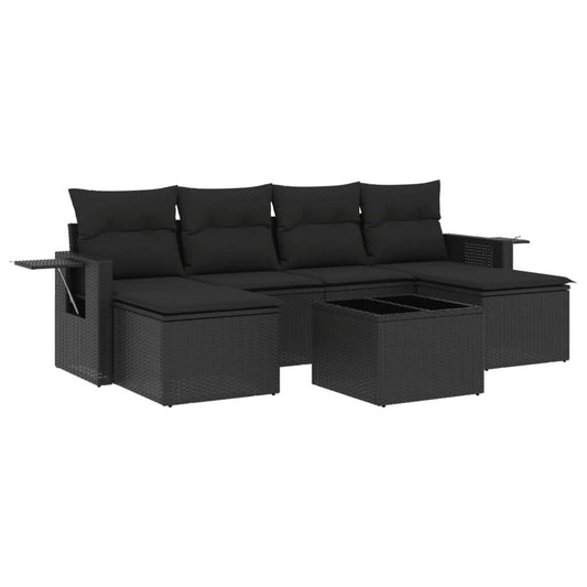 Set Divani da Giardino con Cuscini 7pz Nero Polyrattan