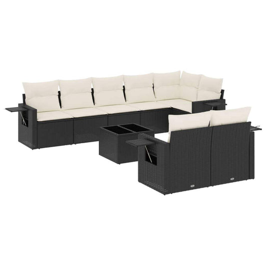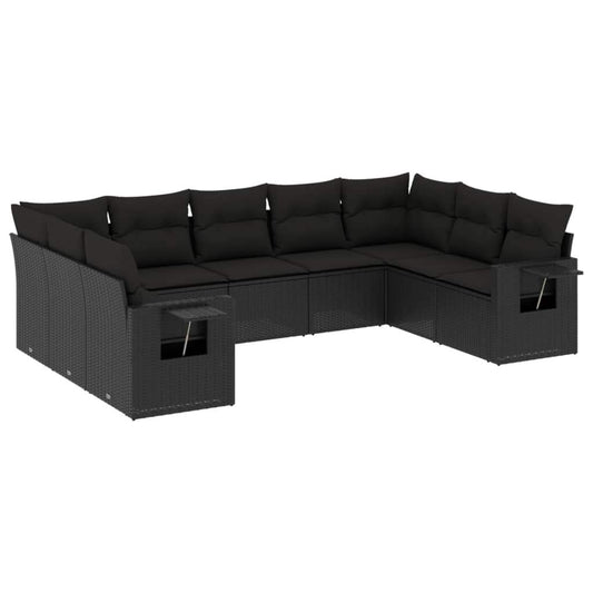 Set Divani da Giardino 9 pz con Cuscini Nero in Polyrattan