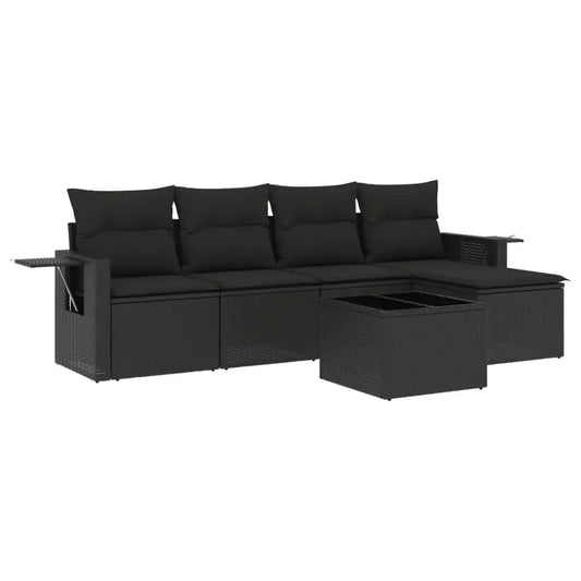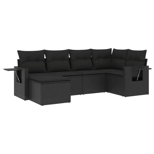 Set Divano da Giardino 6 pz con Cuscini Nero in Polyrattan