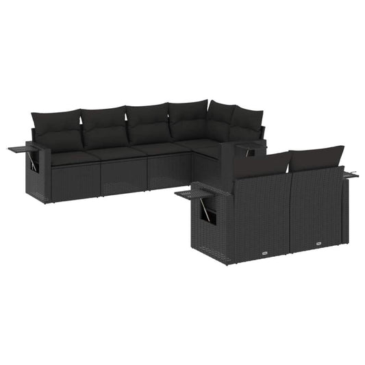 Set Divani da Giardino con Cuscini 7pz Nero Polyrattan
