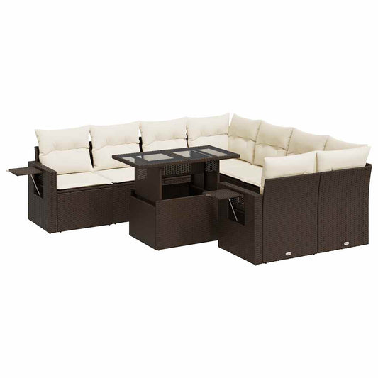Set Divani da Giardino 9pz con Cuscini Marrone in Polyrattan