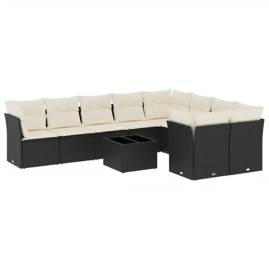 Set Divani da Giardino 11 pz con Cuscini in Polyrattan Nero