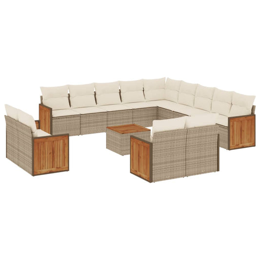 Set Divano da Giardino 13 pz con Cuscini Beige in Polyrattan