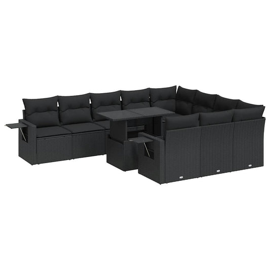 Set Divani da Giardino 11 pz con Cuscini in Polyrattan Nero