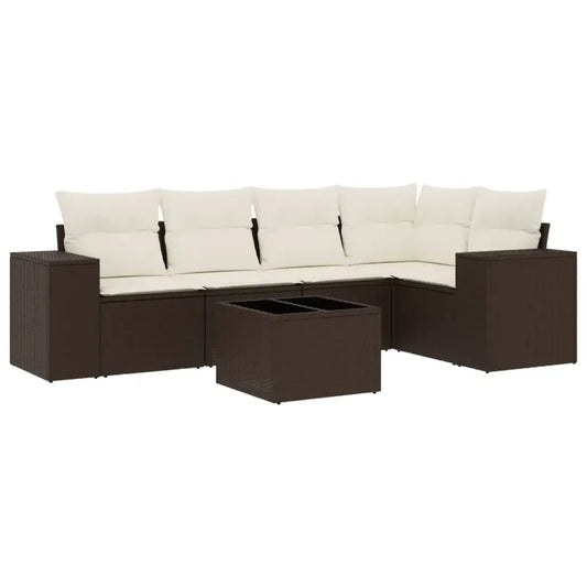Set Divano da Giardino 6 pz con Cuscini Marrone in Polyrattan