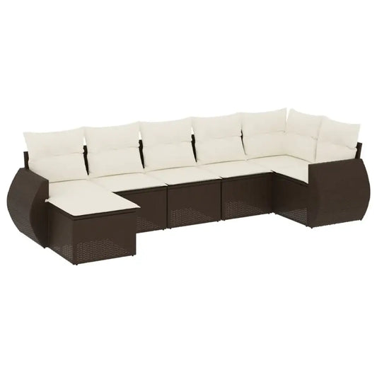 Set Divani da Giardino 7 pz con Cuscini Marrone in Polyrattan