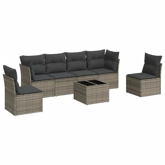 Set Divani da Giardino 7 pz con Cuscini Grigio in Polyrattan