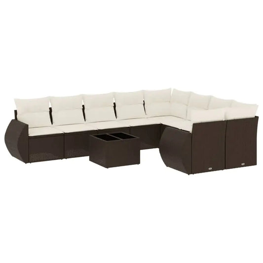 Set Divani da Giardino 10pz con Cuscini in Polyrattan Marrone