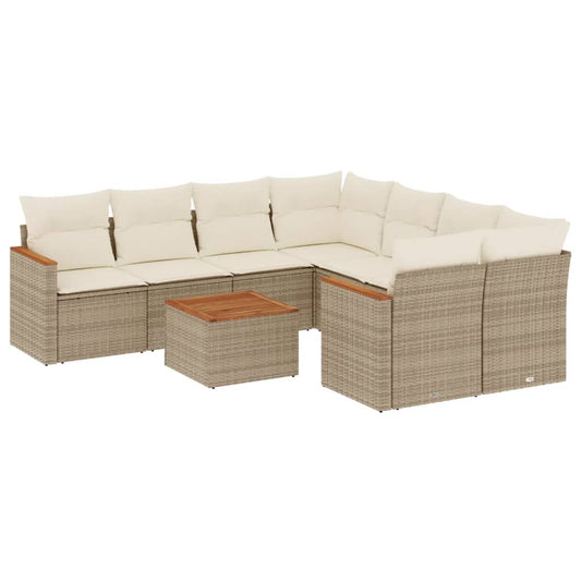 Set Divano da Giardino 10 pz con Cuscini Beige Misto Polyrattan